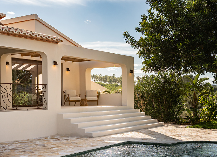 Deze trap vormt een naadloze verbinding tussen veranda, tuin en zwembad. Met oog voor detail en vakmanschap gecreëerd, als een stijlvolle overgang tussen architectuur en landschap.